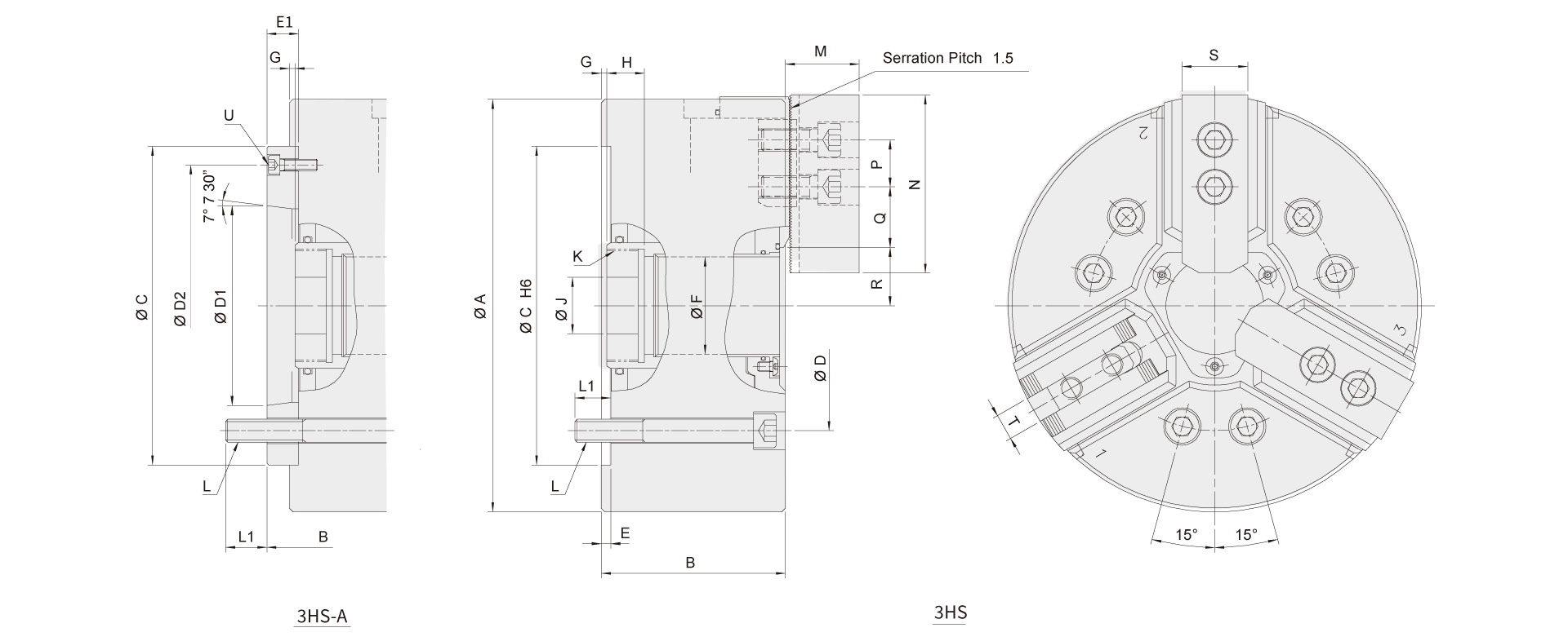 A | B | B | C | D | D1 | D2 | E | E1 | F | G max. | G max. | G min. | G min. | H | J | K max. | K Default | L | L1 | L1 | M | N | P | Q max. | Q min. | R max. | R min. | S | T | U |