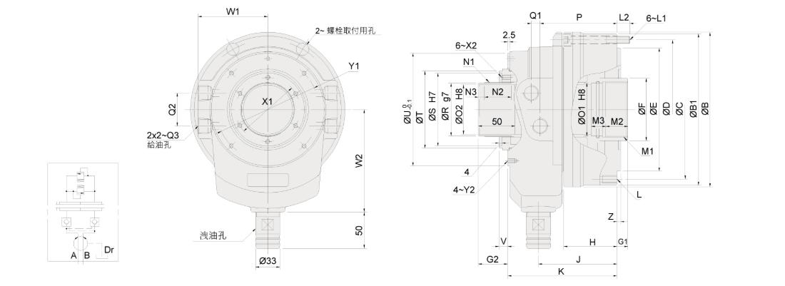 | TS-539 | 107 | 143 | 141 | 125 | 125 | 110 | 52 | 15 | 0 | 42.5 | 27.5 | 57 | 91 | 124 | 6~M10x20 | M8x60 | 12 | M45x1.5 | 25 | 12 | M44x1.5 | 26 | 8 | 42 | 39 | 85 | 8.5 | 30 | RC1/4 | 42 | 69 | 72 | 103 | 10 | 62.5 | 100 | 54 | M6x10 | 90 | M5x12 | 5 |