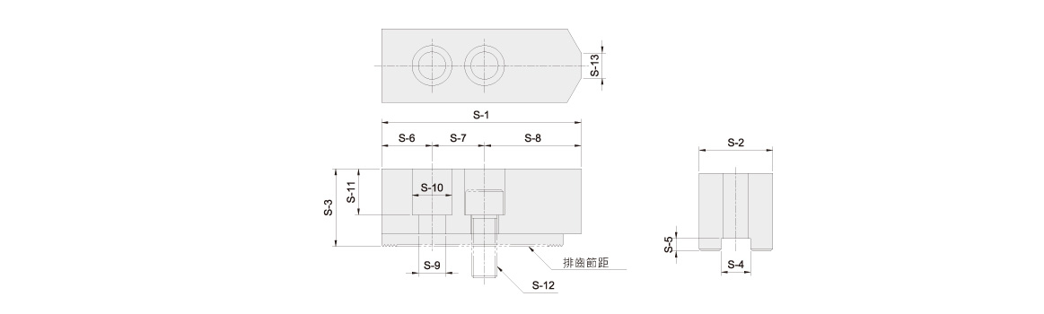 | 型号 | S-1 | S-2 | S-3 | S-4 | S-5 | S-6 | S-7 | S-8 | S-9 | S-10 | S-11 | S-12 | S-13 | 排齿节距 | 适用夹头 | 三爪重量 |