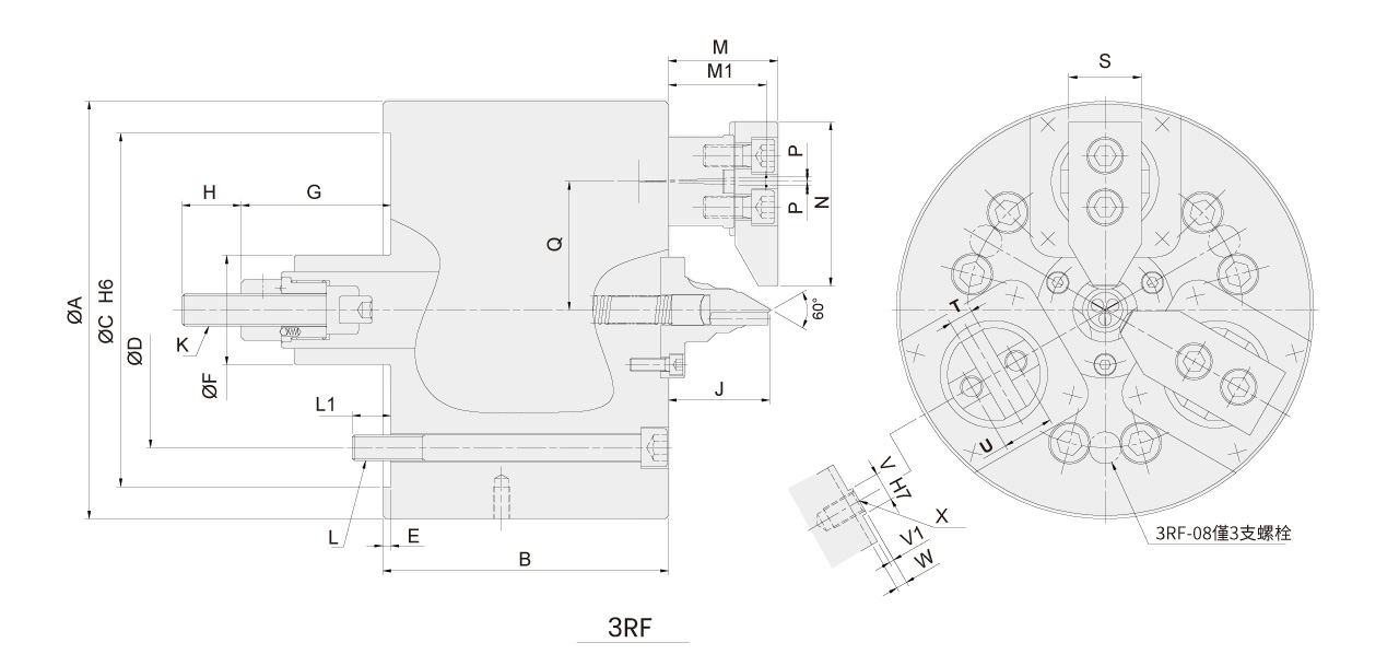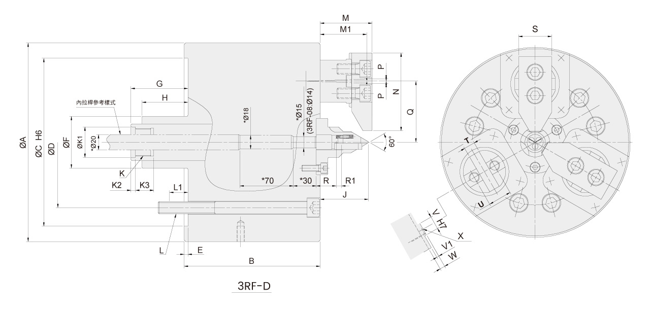 3RF 軸車削用夾頭作動