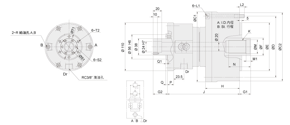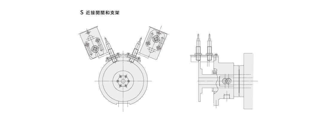 近接開關與迴轉接頭是選購品。可選擇所合適的附加類型。詳細安裝介面尺寸請與聯繫我們。