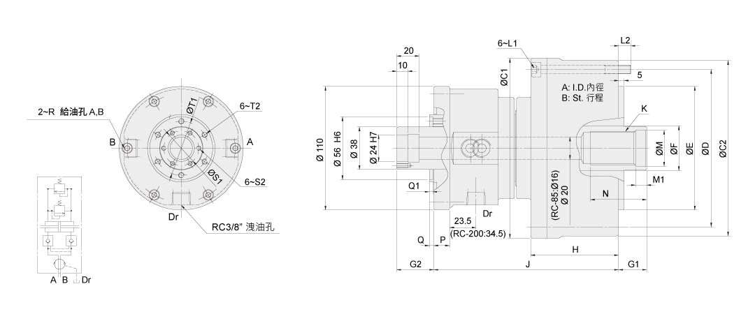 近接開關與迴轉接頭是選購品。可選擇所合適的附加類型。詳細安裝介面尺寸請與聯繫我們。