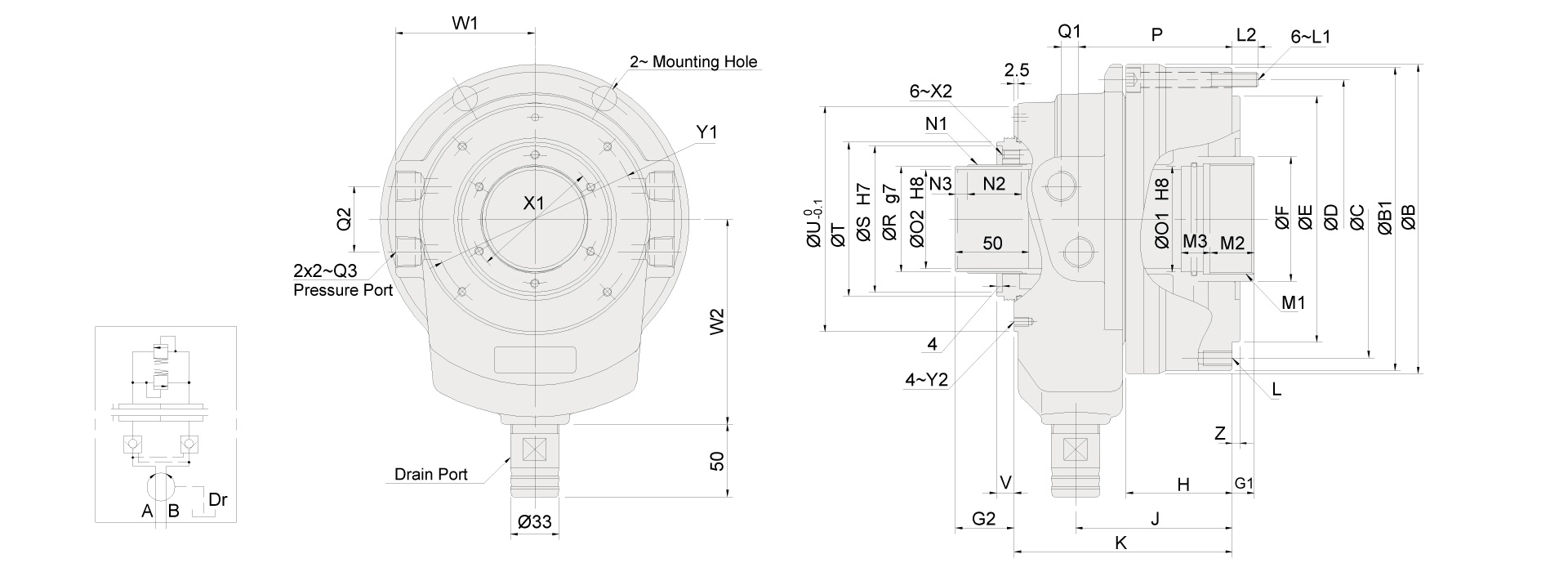 | TS-539 | 107 | 143 | 141 | 125 | 125 | 110 | 52 | 15 | 0 | 42.5 | 27.5 | 57 | 91 | 124 | 6~M10x20 | M8x60 | 12 | M45x1.5 | 25 | 12 | M44x1.5 | 26 | 8 | 42 | 39 | 85 | 8.5 | 30 | RC1/4 | 42 | 69 | 72 | 103 | 10 | 62.5 | 100 | 54 | M6x10 | 90 | M5x12 | 5 |